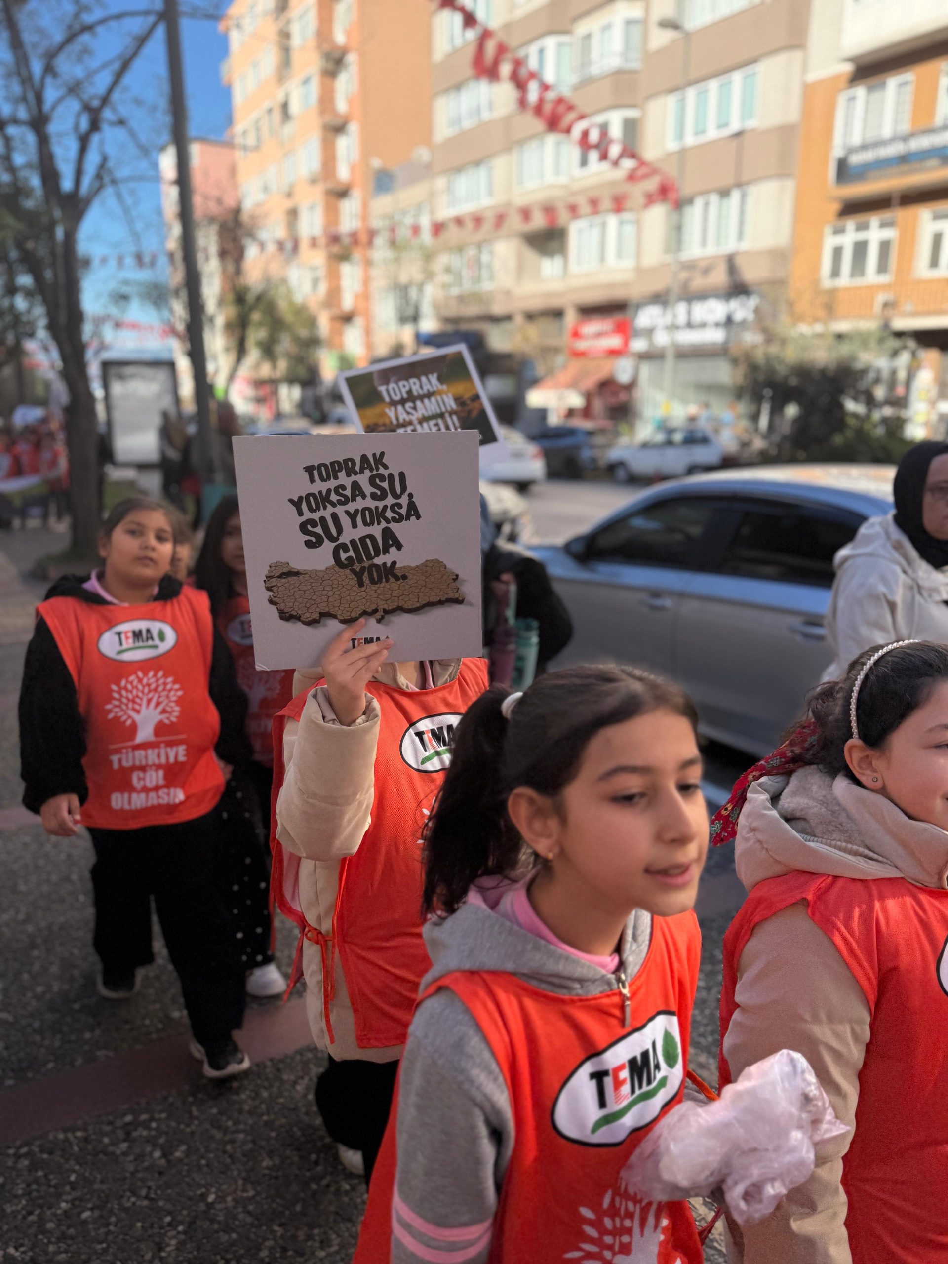 Minik TEMA gönüllüleri, “Toprak Yoksa Su, Su Yoksa Gıda Yok” temasıyla okul binalarından başlayarak kentin kalbi Cumhuriyet Meydanı’na kadar yürüdü.