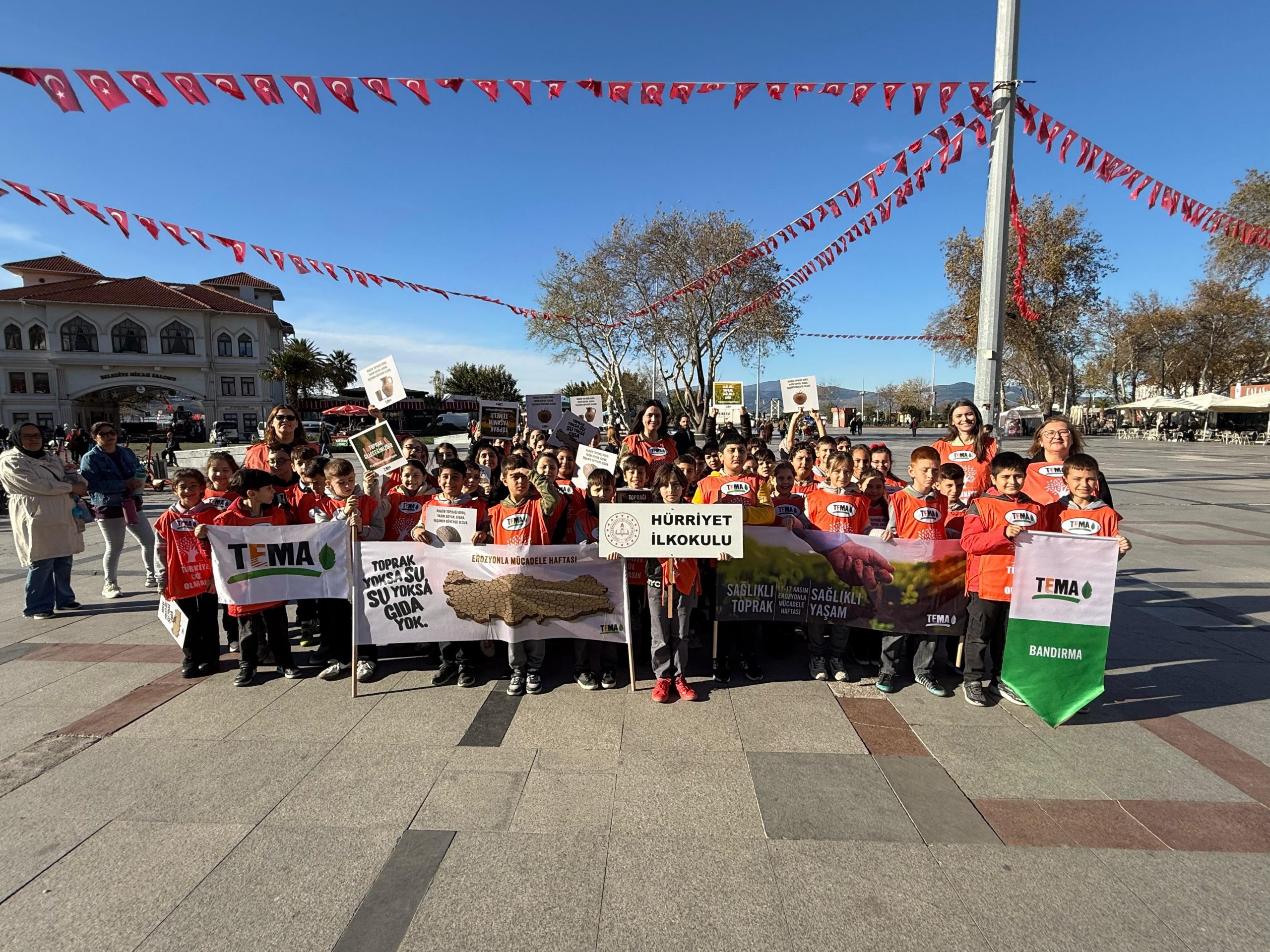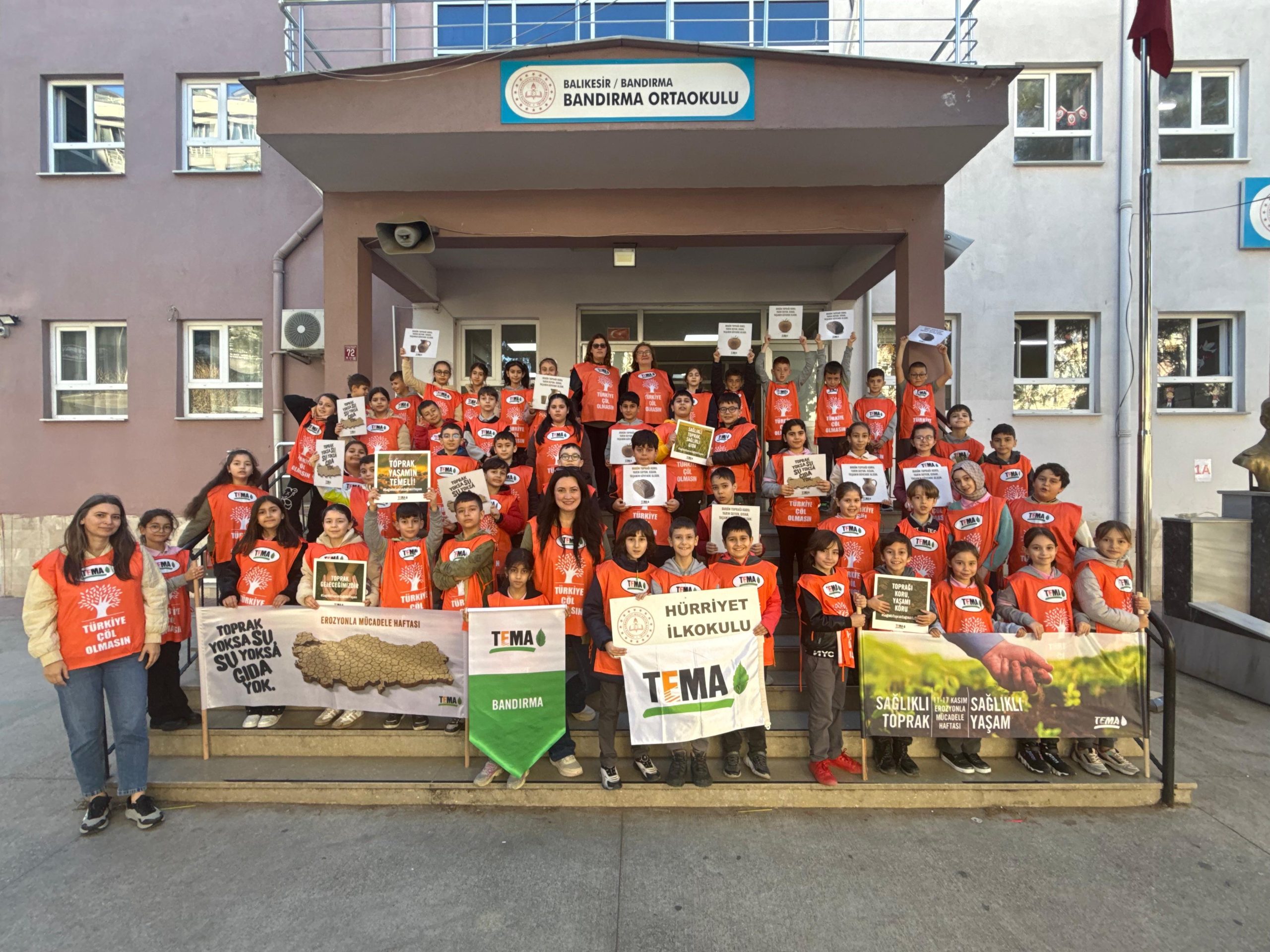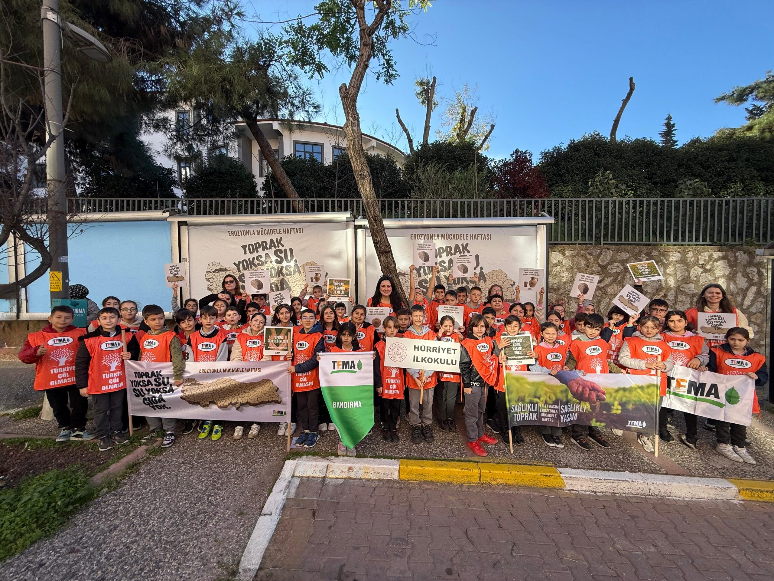 TEMA Vakfı Bandırma İlçe Sorumluluğu öncülüğünde, 17-30 Kasım Erozyonla Mücadele Haftası etkinlikleri kapsamında Bandırma Hürriyet İlkokulu 4. Sınıf öğrencileri anlamlı bir farkındalık yürüyüşü gerçekleştirdi.